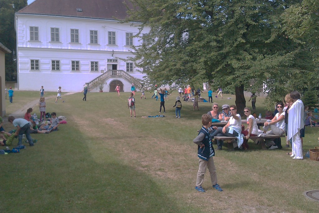 Gebratene Hühner, Würstel, selbstgemachte Salate und Mehlspeisen, Säfte, Wein und Bier wurden zum leiblichen Wohl geboten.
