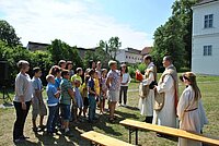 Die ukrainischen Kinder überreichten als Zeichen der Dankbarkeit ihre Flagge und eine selbst gebastelte traditionelle Puppe.