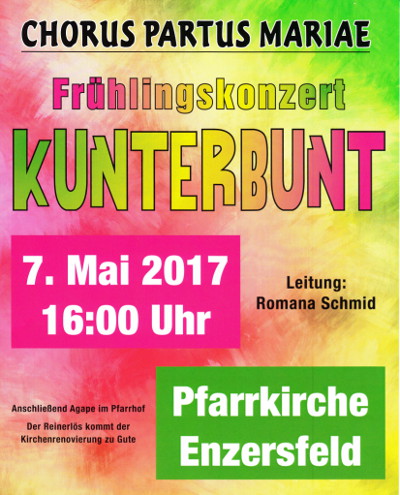 Unter dem Motto "Kunterbunt" gab der Enzersfelder Kirchenchor Chorus Partus Mariae am Sonntag, 7. Mai 2017 ein Konzert in der Pfarrkirche…