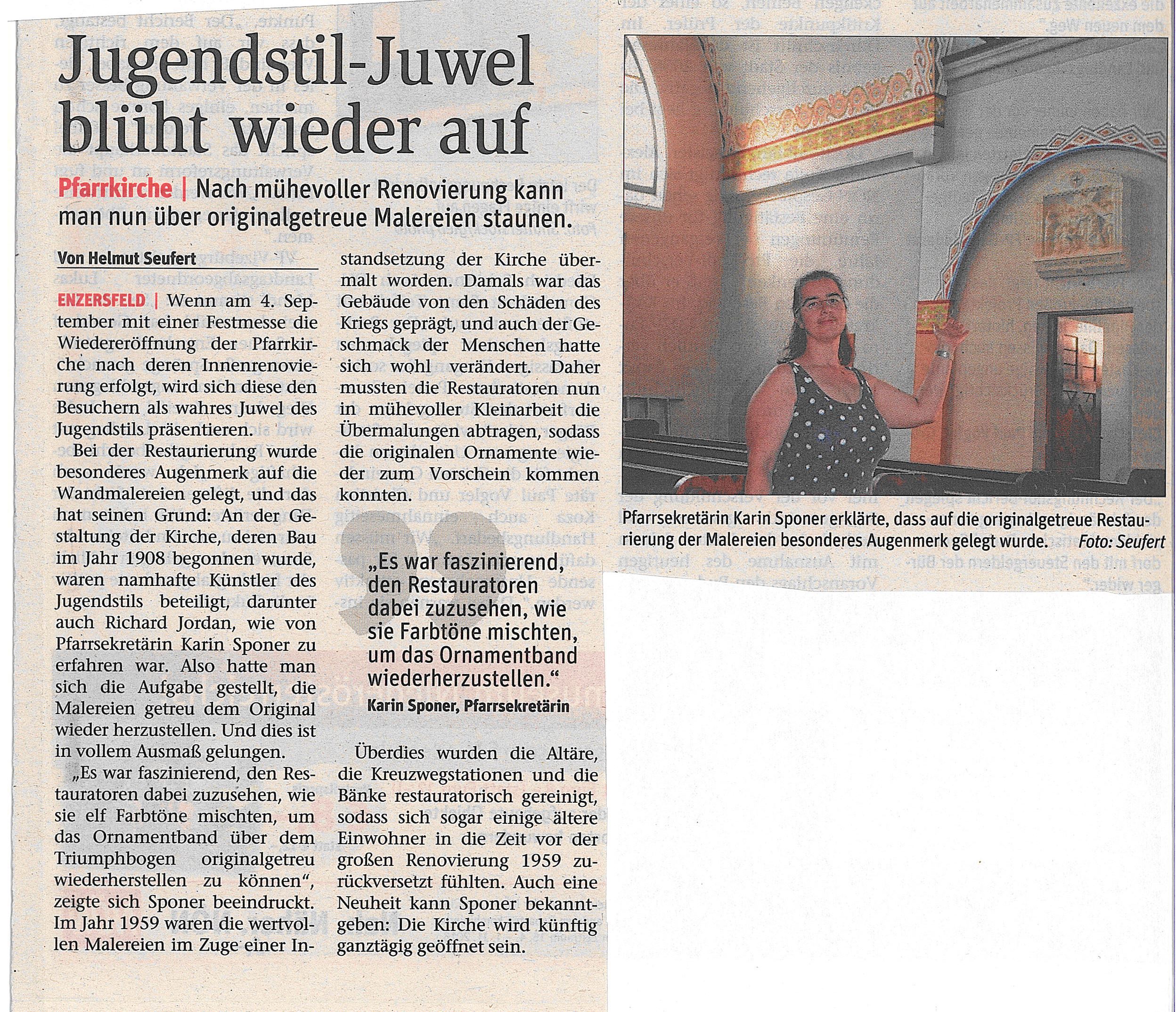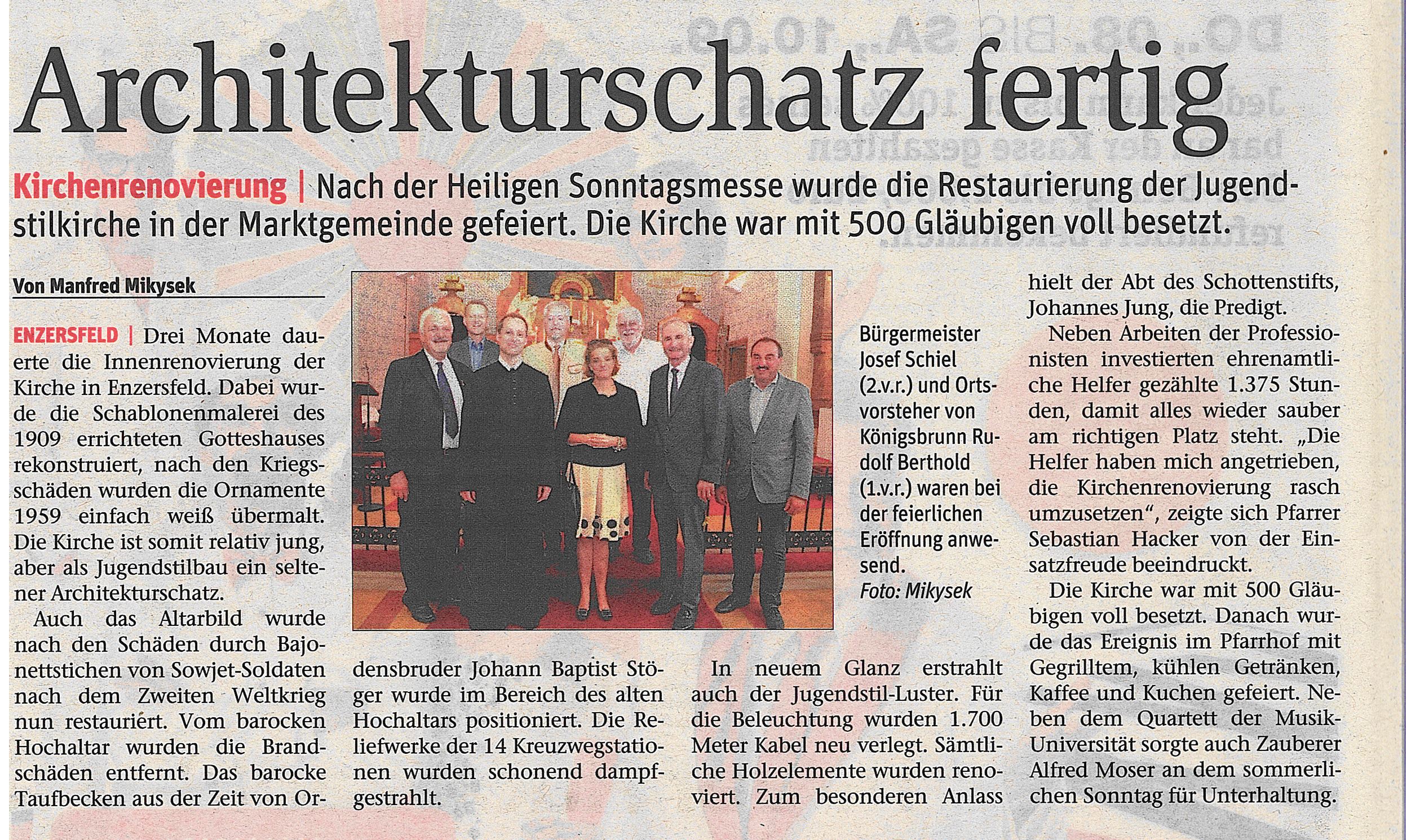 Die NÖN berichtete über den Abschluss der Kircheninnenrenovierung von Maria Geburt Enzersfeld.