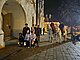 Kinder erinnerten mit ihren Gesängen und Laternen an den Hl. Martin. In der Pfarre Klein-Engersdorf versammelten sie sich am 11.11. in der Kirche St. Veit. Frau Birgit Schmidt hatte ein Theaterstück für sie geschrieben, in dem eine Frau sich eines Bettlers erbarmt und für ihre gute und zuverlässige Einstellung zur Präsidentin gewählt wurde. Sie erinnerte in ihrer Grundhaltung an den Hl. Martin, der nicht den Ruhm und die Ehre suchte, sondern aus seinem ganzen Wesen mit der Hilfe Gottes Gutes tat. Frau Bianca Sator zeigte am 14.11. mit ihren Schauspielern den zahlreich verammelten Kiindern in der Pfarrkirche Enzersfeld, wie der Hl. Martin den Bettler vor den Stadtmauern Amiens entdeckte, an dem so viele vorbeigegangen waren. Die Pfarrhöfe beider Pfarren wurden zu gemütlichen Orten des Zusammenseins mit Punsch, Martinskipferln zum Teilen und einem Martinsfeuer, an dem man sich wärmen konnte. Elisabeth Stütz backte in Enzersfeld so viele Kipferl, wie Martin alt wurde. In St. Veit wurde das selbstgebastelte Holzpferd von der Pfarrkirche bis zum Pfarrhof mitgezogen, gesichert von den Feuerwehrkameraden aus Flandorf und Hagenbrunn. In Enzersfeld kamen zwei Pferde des k.u.k. Dragonerregiments 2 Nikolaus Graf Pejacsevich mit ihren Reitern und ihrem Oberst Michael Islinger und Begleitern zur Johann-Nepomuk-Kapelle und zogen mit den Kindern zur Pfarrkirche.