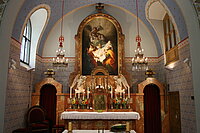 Das Altarbild von der Geburt Mariens wurde vom Maler Hemmerlein im Jahre 1853 gemalt und wird von den Statuen der Pestpatrone des Hl. Sebastian und des Hl. Rochus flankiert.