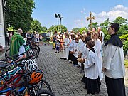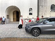 In Klein-Engersdorf segnete Hw. Seweryn Bojanowski die Fahrzeuge der Kinder schon zum Ende des Schuljahres, in Enzersfeld P. Sebastian die Automobile der Erwachsenen am 22. Juli 2023.