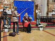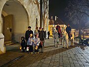 Kinder erinnerten mit ihren Gesängen und Laternen an den Hl. Martin. In der Pfarre Klein-Engersdorf versammelten sie sich am 11.11. in der Kirche St. Veit. Frau Birgit Schmidt hatte ein Theaterstück für sie geschrieben, in dem eine Frau sich eines Bettlers erbarmt und für ihre gute und zuverlässige Einstellung zur Präsidentin gewählt wurde. Sie erinnerte in ihrer Grundhaltung an den Hl. Martin, der nicht den Ruhm und die Ehre suchte, sondern aus seinem ganzen Wesen mit der Hilfe Gottes Gutes tat. Frau Bianca Sator zeigte am 14.11. mit ihren Schauspielern den zahlreich verammelten Kiindern in der Pfarrkirche Enzersfeld, wie der Hl. Martin den Bettler vor den Stadtmauern Amiens entdeckte, an dem so viele vorbeigegangen waren. Die Pfarrhöfe beider Pfarren wurden zu gemütlichen Orten des Zusammenseins mit Punsch, Martinskipferln zum Teilen und einem Martinsfeuer, an dem man sich wärmen konnte. Elisabeth Stütz backte in Enzersfeld so viele Kipferl, wie Martin alt wurde. In St. Veit wurde das selbstgebastelte Holzpferd von der Pfarrkirche bis zum Pfarrhof mitgezogen, gesichert von den Feuerwehrkameraden aus Flandorf und Hagenbrunn. In Enzersfeld kamen zwei Pferde des k.u.k. Dragonerregiments 2 Nikolaus Graf Pejacsevich mit ihren Reitern und ihrem Oberst Michael Islinger und Begleitern zur Johann-Nepomuk-Kapelle und zogen mit den Kindern zur Pfarrkirche.