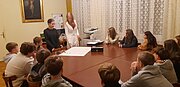 Sie versammelten sich anschließend zur ersten Firmstunde im Pfarrhof, wo sie über die Frage der Existenz Gottes Gedanken austauschten. Der Firmunterricht verbindet Jugendliche aus Hagenbrunn, Enzersfeld, Königsbrunn, Klein-Engersdorf, Flandorf und Stetten. Stetten gehört zwar nicht zum Pfarrverband, ein Bub möchte aber mit einem Schulfreund gemeinsam zur Firmung gehen. Hannah und Mia begleiteten die Firmlinge gemeinsam mit P. Sebastian.