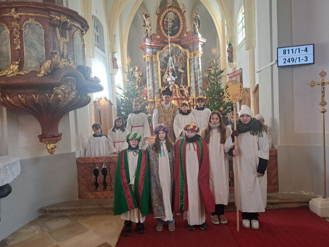 Die Kinder hören die Botschaft des Heiligen Nikolaus in der Pfarrkirche Enzersfeld