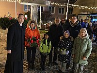 Der Dorferneuerungsverein gestaltet jedes Jahr einen großen Adventkranz auf dem Dorfplatz in Enzersfeld, wo am Abend zum ersten Advent die Blasmusik spielt und Punsch mit Broten ausgegeben wird. Der Obmann des Dorferneuerungsvereins DI Alexander Taudes-Hutterstrasser zeigte sich in seiner Ansprache bewegt von der Atmosphäre der vorweihnachtlichen Zeit, dem gemeinsamen Zusammenstehen. Nach der Segnung des Adventkranzes durch P. Sebastian Hacker lud er zum Singen von Adventliedern ein. Vizebürgermeisterin Helga Ronge dankte dem Dorferneuerungsverein für die Initiative, die durch die Marktgemeinde unterstützt wird.