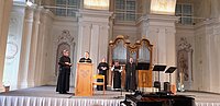 Im Kolomani-Saal trat eine Musikgruppe des Benediktinergymnasiums Melk mit selbstkomponierten Liedern auf, nachdem Abtpräses Johannes Perkmann OSB die Gäste aus Österreich und dem umliegenden Ausland begrüßt hatte. Abtprimas Jeremias Schröder OSB war eigens aus Rom angereist. Er lobte die Benediktiner in Österreich für ihre Kunst zu feiern und ihre Beständigkeit über die Jahrhunderte gerade in herausfordenden Zeiten.