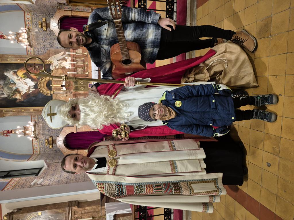 Herrmann Romano spielte mit der Gitarre und unterstützte die Kinder beim Singen der Nikolauslieder, als sie mit dem Hl. Nikolaus durch die Kirche zogen.
