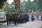 Fronleichnam ist das Hochfest des Leibes und Blutes Christi. Wir feiern, dass Gott in der Eucharistie bleibend gegenwärtig ist. Das Allerheiligste, d.h. der Leib Christi in der Hostie, wird durch den Ort getragen. An vier Altären wird der Segen gespendet und ein Evangelium gelesen. Die Zahl "vier" bedeutet die vier Himmelrichtungen, also die ganze Welt. Diese Fest wird seit dem 13. Jh. durch die Kirche gefeiert.