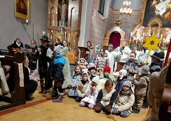 Mit viel Freude habt ihr im Krippenspiel gezeigt, wie wichtig euch Weihnachten ist. Vielen hier in der Kirche ist es zu Herzen gegangen. Durch euer Spiel merken sie, dass Gott gegenwärtig ist. Durch euer Singen erinnern sie sich an die Engel, die für die Hirten sangen. Durch eure Verkleidung wird das ganz nahe, was sich in Betlehem ereignet hat. Gott ist Mensch geworden für uns.